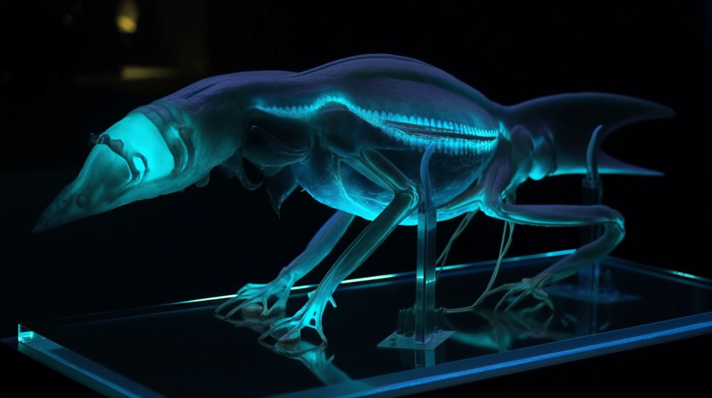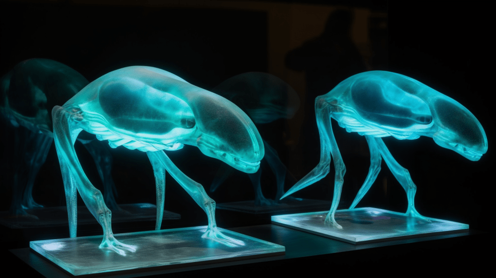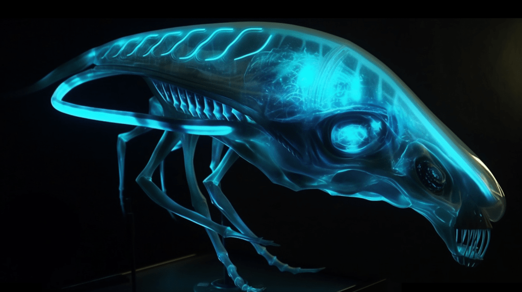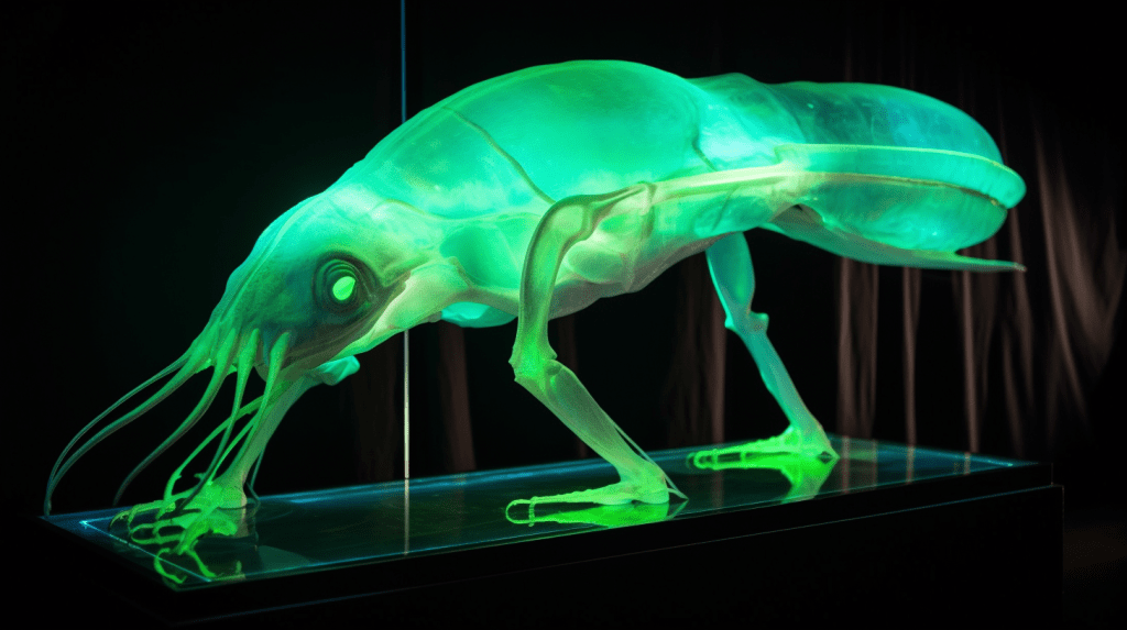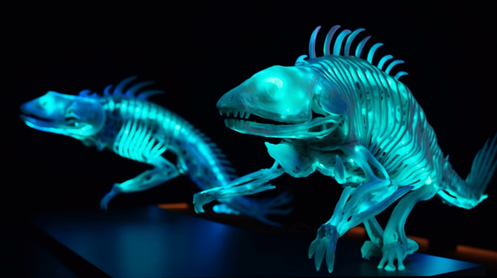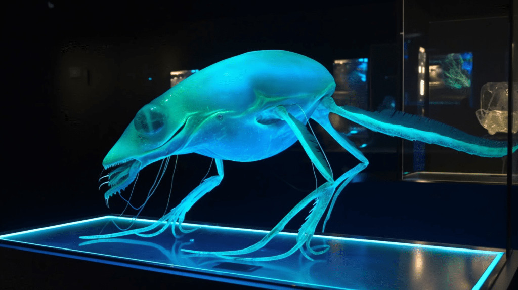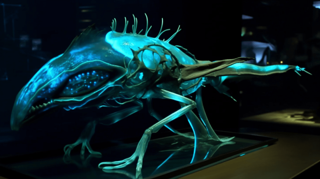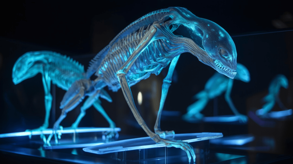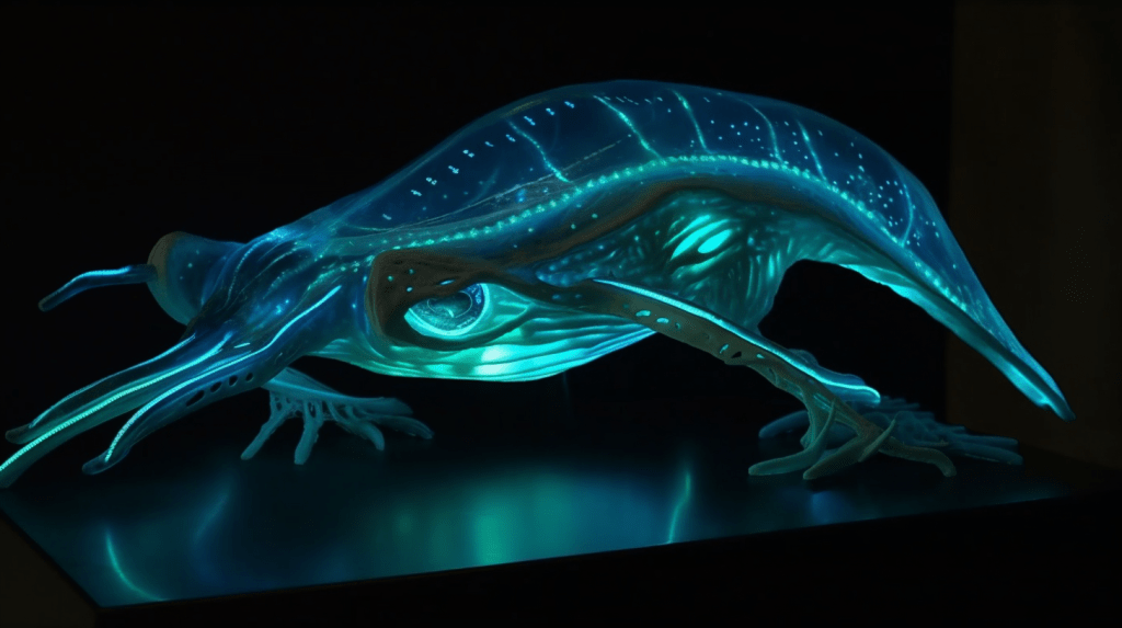 Step into the mesmerizing world of “Celestial Glow,” where the beauty of bioluminescence reigns supreme. The Xenobiology Museum is proud to present a dazzling collection of preserved specimens of non-humanoid alien species that emit an otherworldly glow. These creatures are marvels of nature, possessing the ability to create light through chemical reactions within their bodies, a process known as bioluminescence.