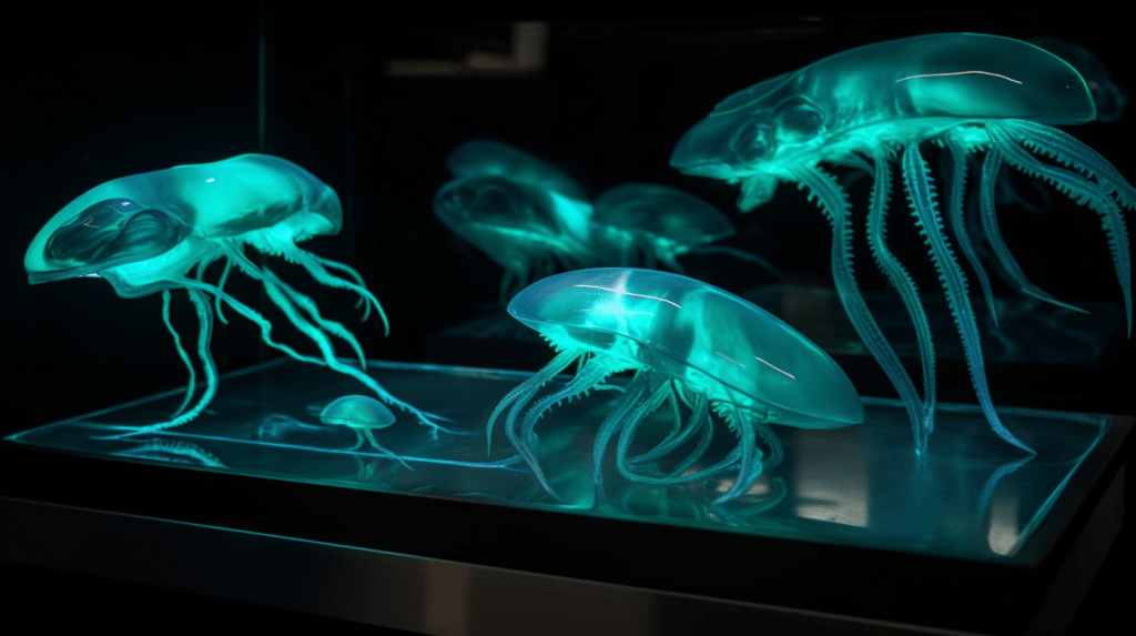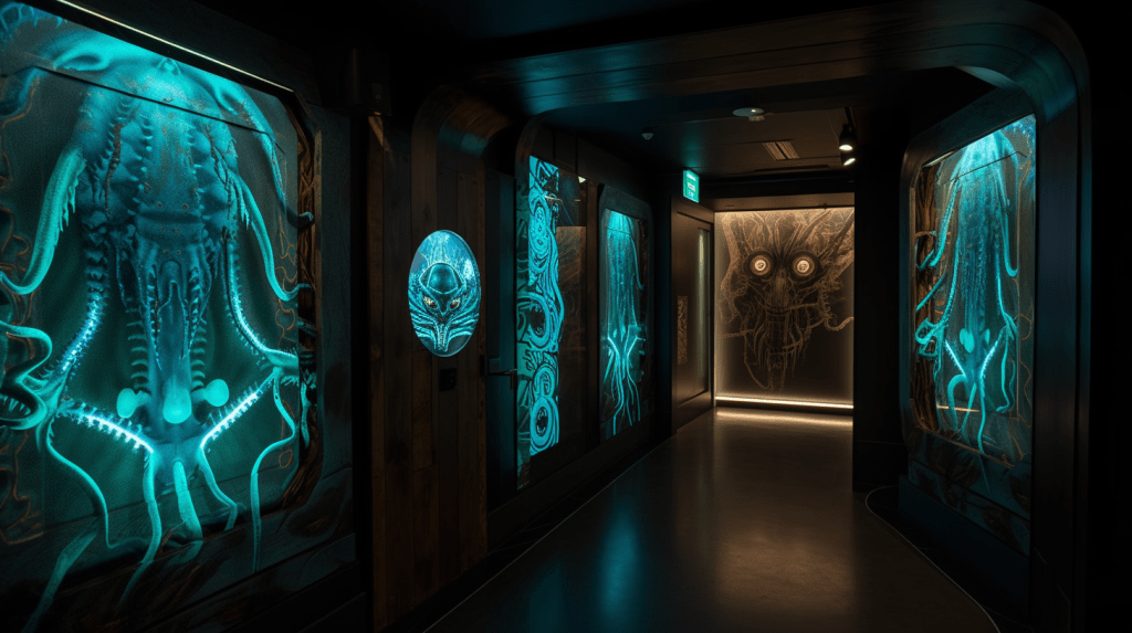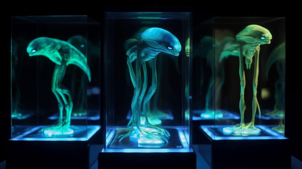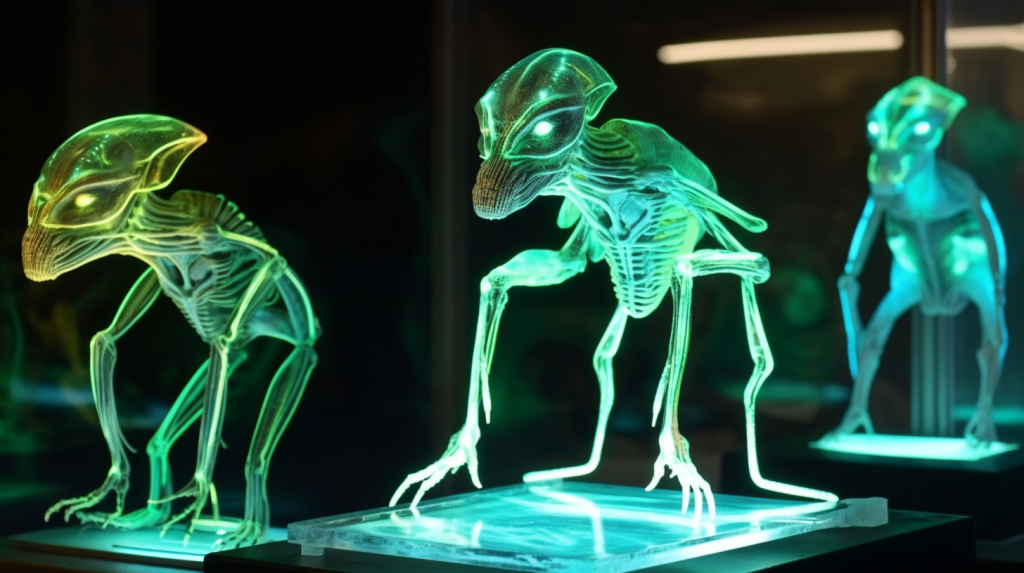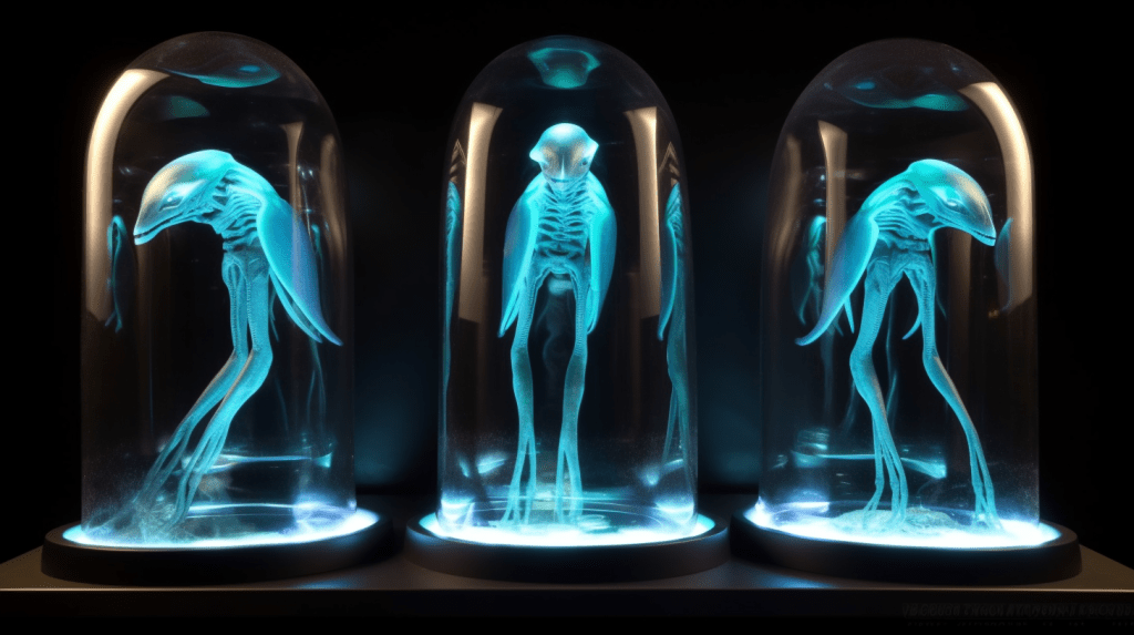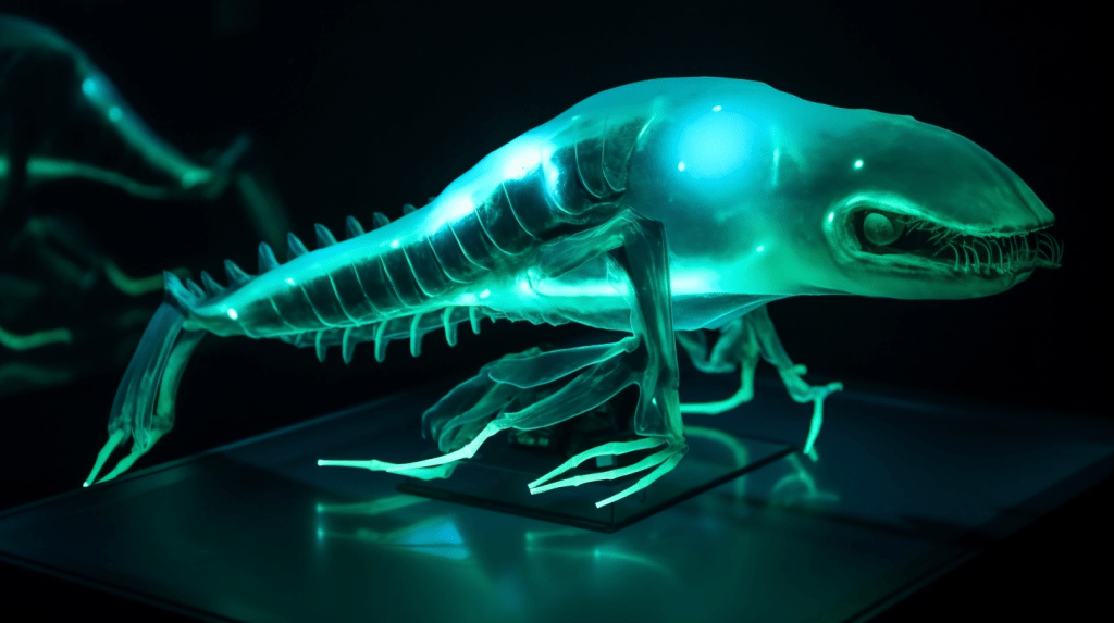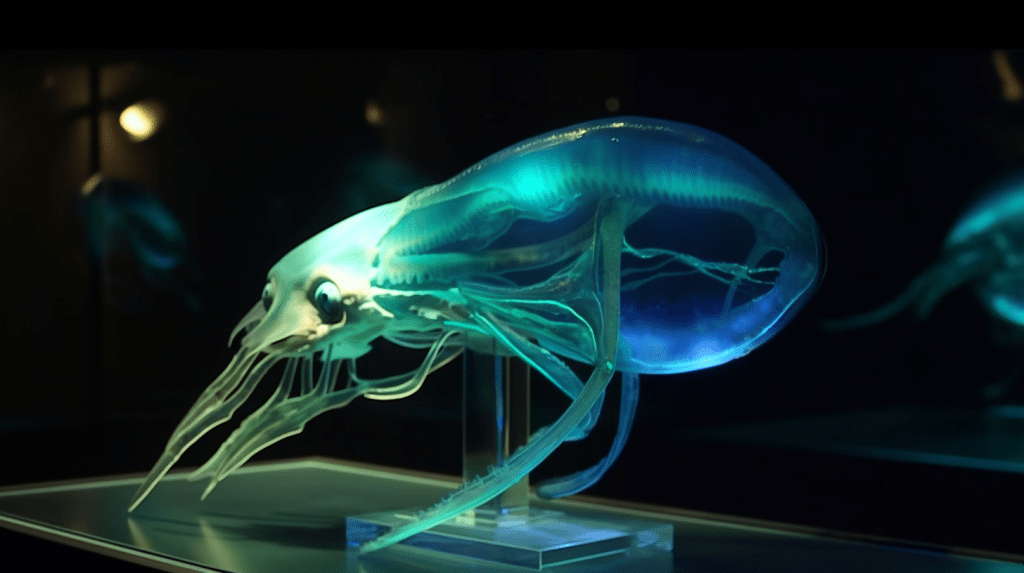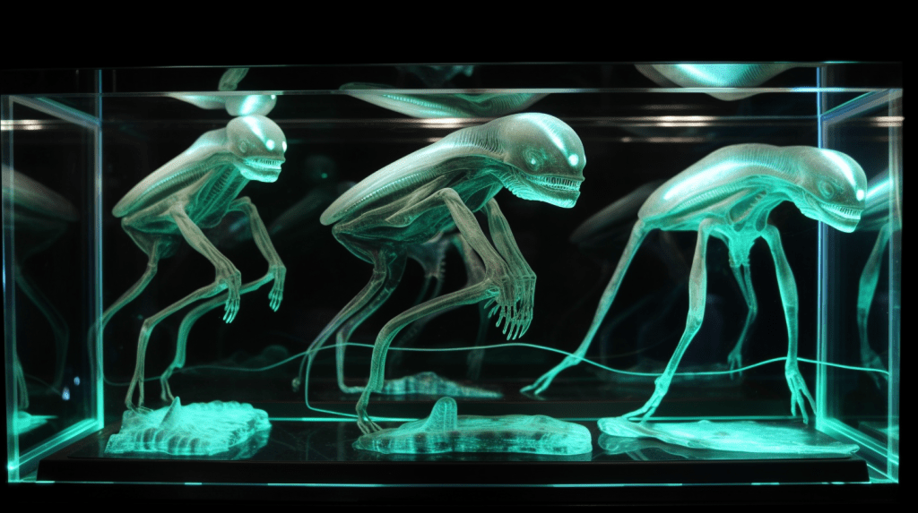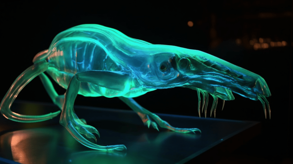 Step into the mesmerizing world of “Celestial Glow,” where the beauty of bioluminescence reigns supreme. The Xenobiology Museum is proud to present a dazzling collection of preserved specimens of non-humanoid alien species that emit an otherworldly glow. These creatures are marvels of nature, possessing the ability to create light through chemical reactions within their bodies, a process known as bioluminescence.