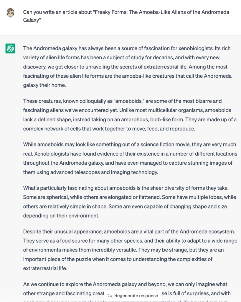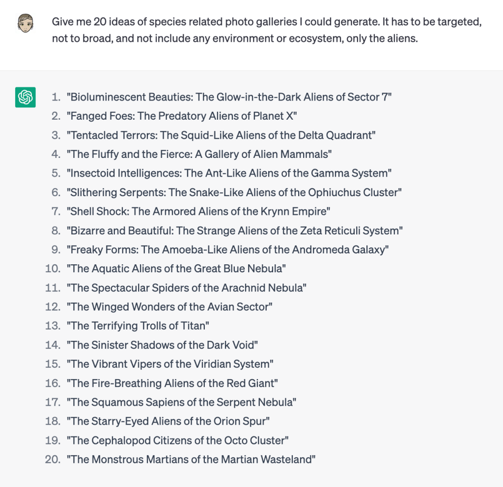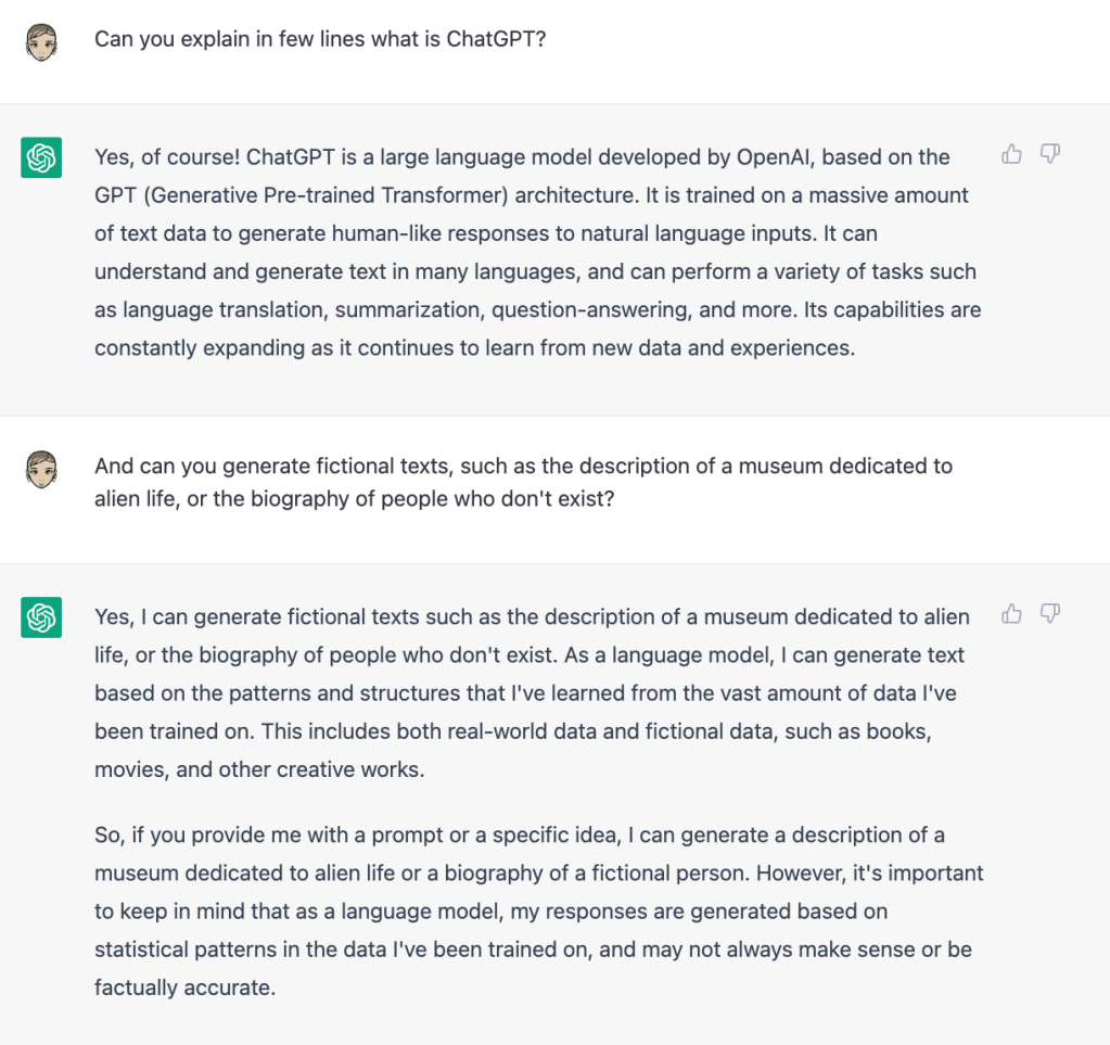 As a writer, it was extremely hard to not intervene and write the texts myself! But the whole point of this project was to have ALL the content generated by artificial intelligence. So, what is ChatGPT? Let’s ask to ChatGPT itself!