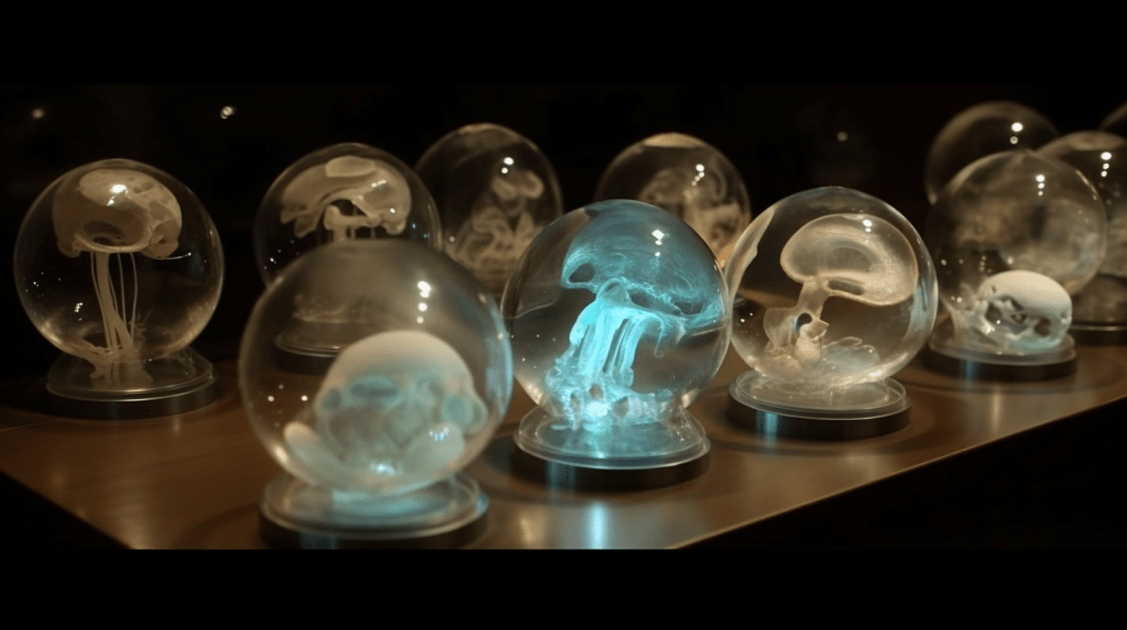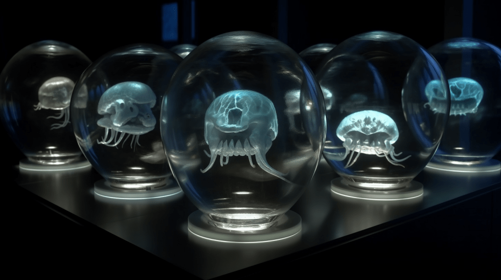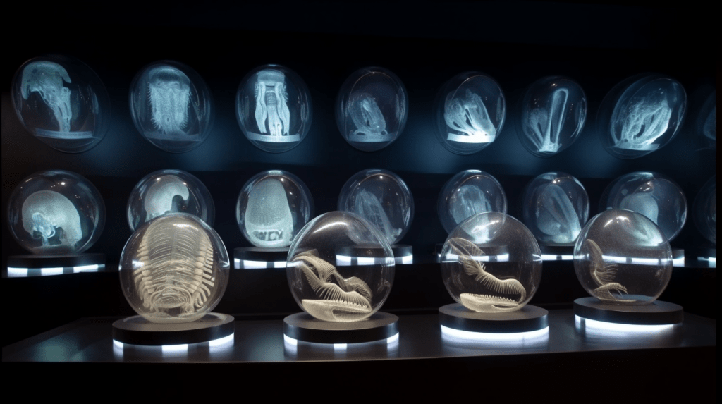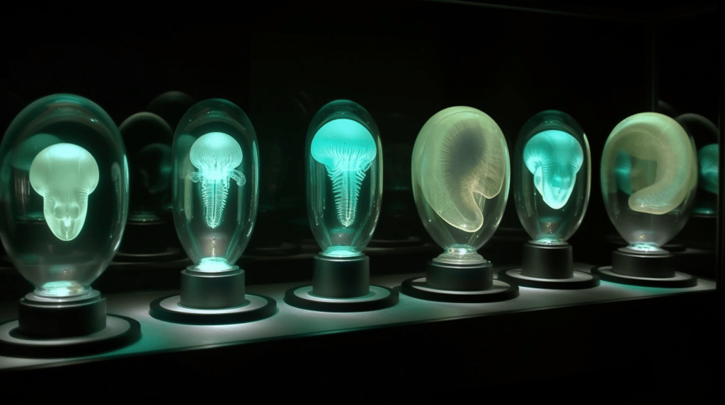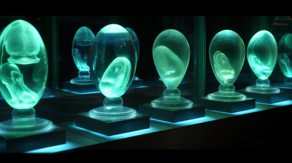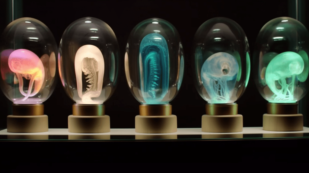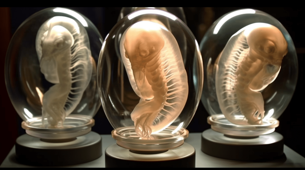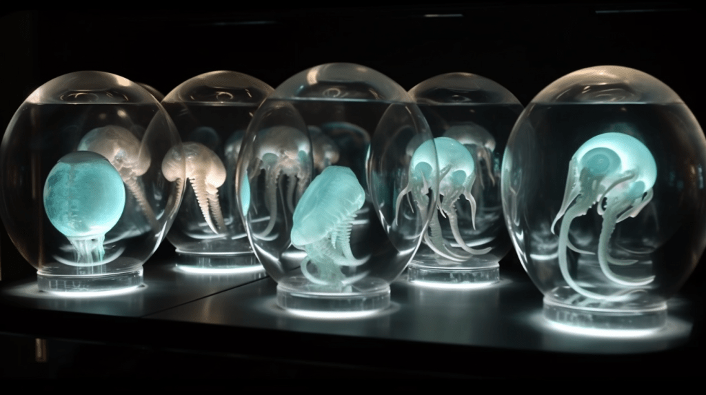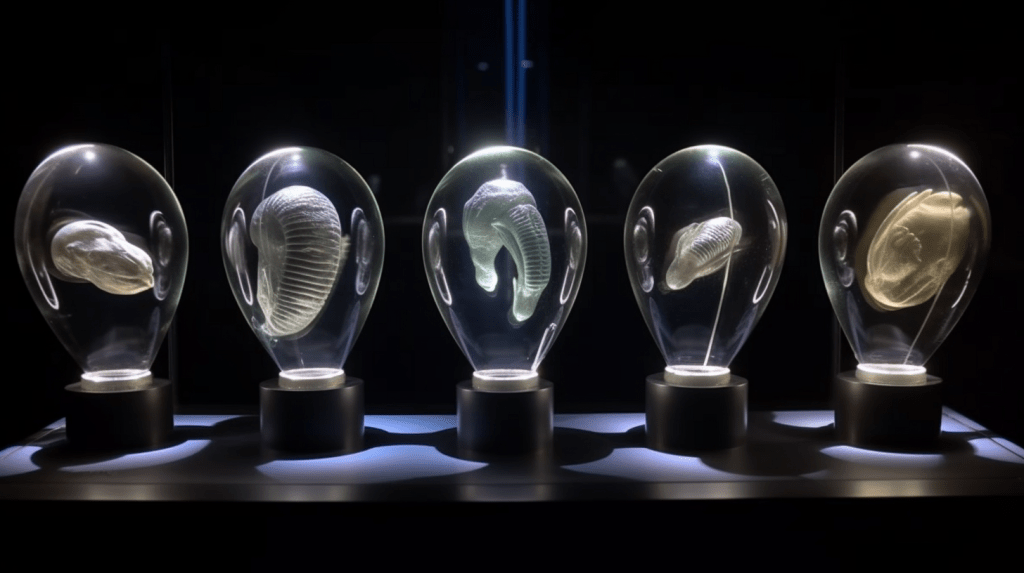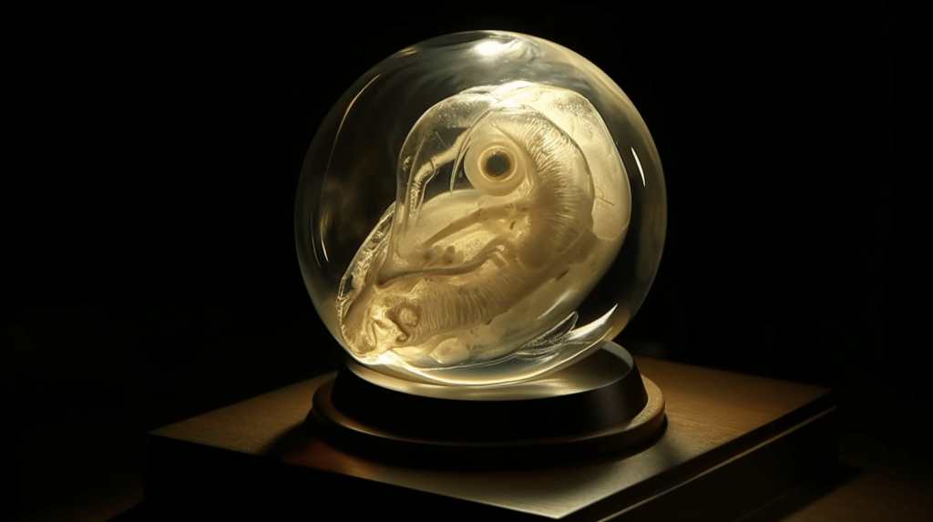 Welcome to The Incubation Room, the Xenobiology Museum’s exhibit on Alien Embryos. Here, we delve into the complex world of extraterrestrial reproduction and development. Our collection showcases preserved specimens of various extraterrestrial embryos, each with their unique features and characteristics. Studying alien embryos presents a unique challenge, as they differ significantly from terrestrial embryos in their anatomy and physiology. Our team of specialists uses advanced vitrification techniques to preserve these delicate specimens, ensuring that their structures remain intact and allowing us to study their development. The exhibit highlights the diversity of alien embryonic development and the many ways in which these creatures have adapted to their environments. Visitors can observe the intricate structures and mechanisms involved in extraterrestrial reproduction, gaining a deeper understanding of the complexity of alien life. Join us on this journey of discovery into the fascinating world of alien embryology.